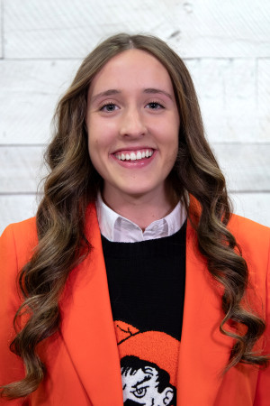 Madisyn Myers' parents instilled in her the importance of recognizing needs and taking action. The issue that stood out most — food insecurity — became her orange passion. Alongside her sisters, Madisyn co-founded Beef for the Bank, a nonprofit that donates beef to food banks, homeless shelters, senior centers and Meals on Wheels programs across Oklahoma. The organization aims to combat hunger and raise awareness about food insecurity. She also volunteers with Our Daily Bread, Kingfisher County Compassion Clinic and Wishes for Water. In 2024, Madisyn was recognized as an Oklahoma State Top Ten Freshman and the College of Education and Human Sciences Freshman Researcher of the Year.